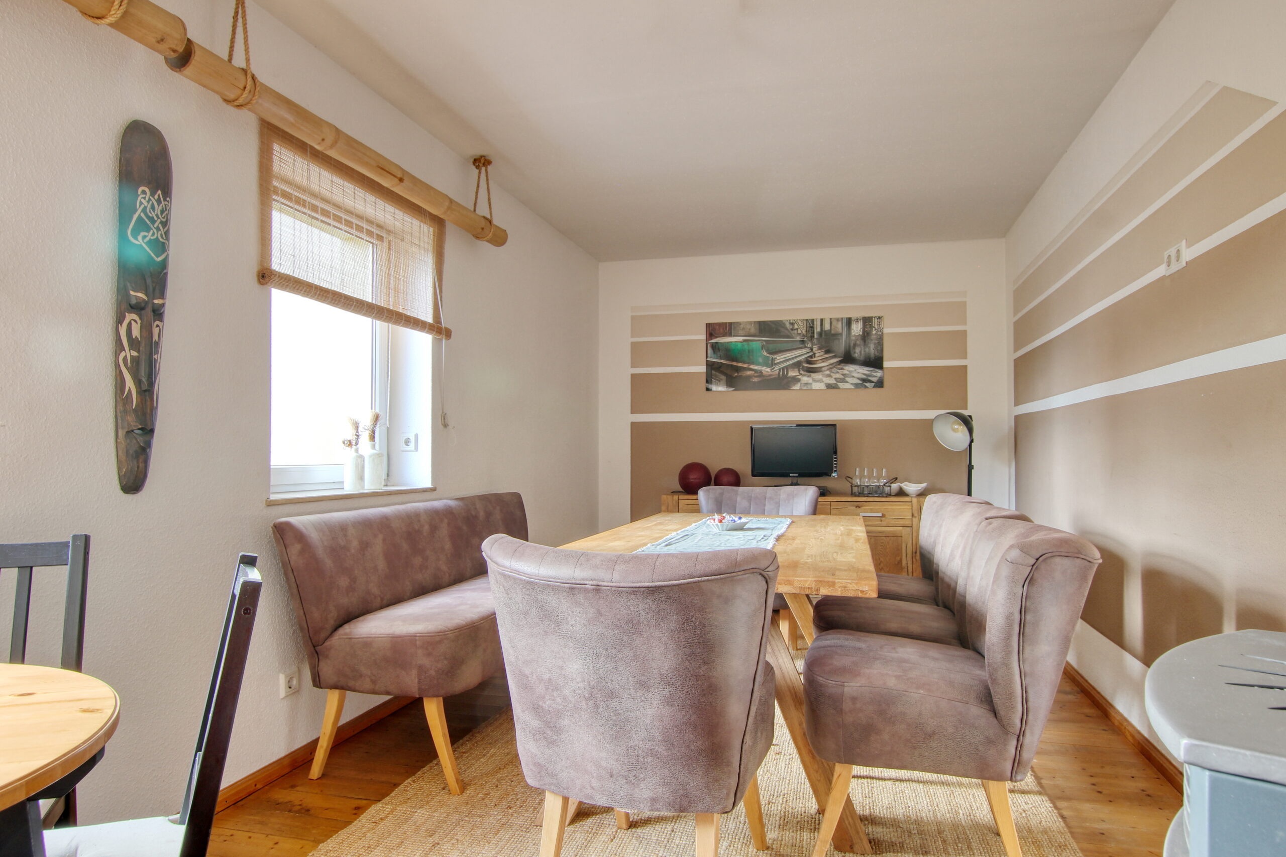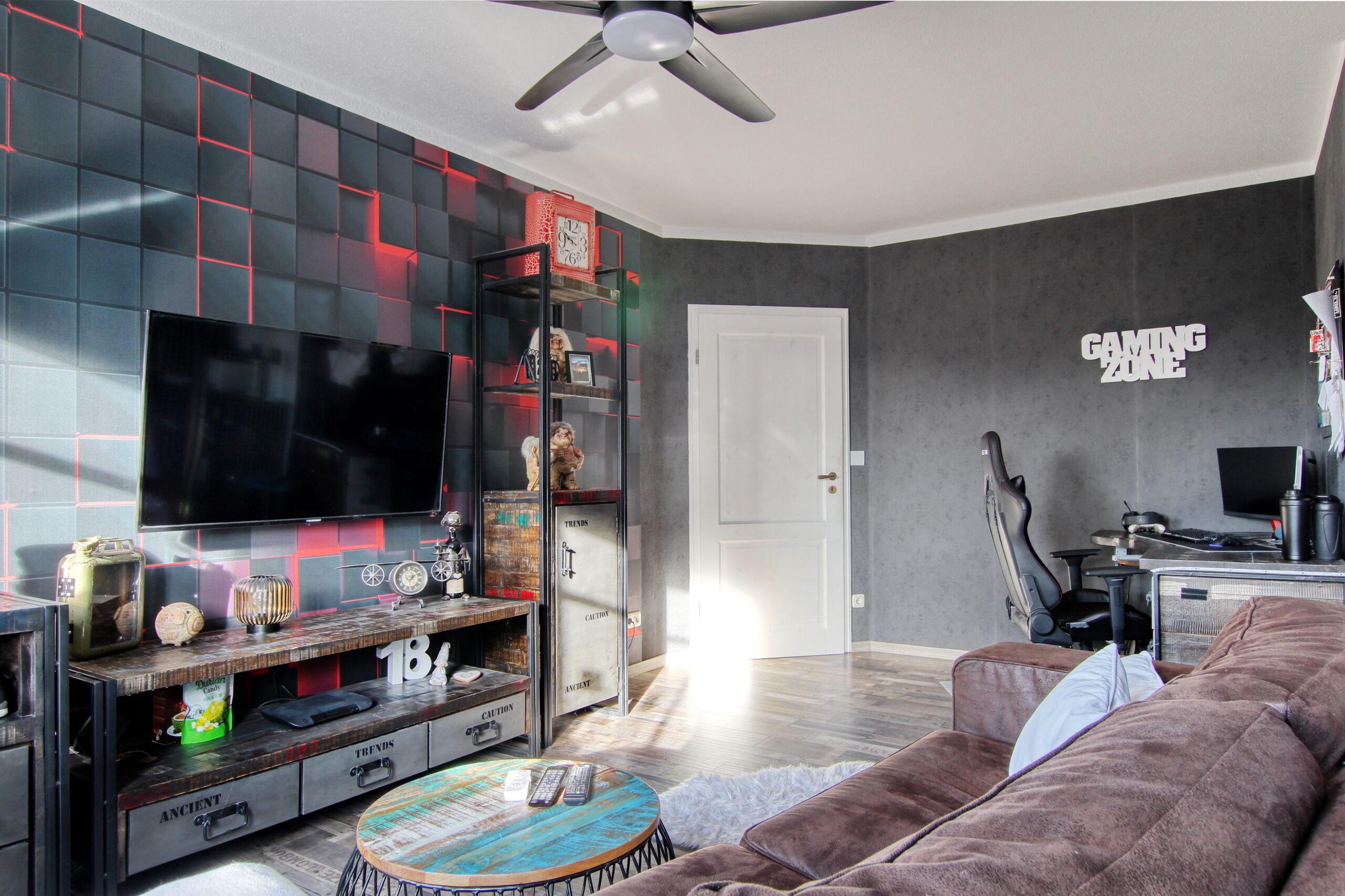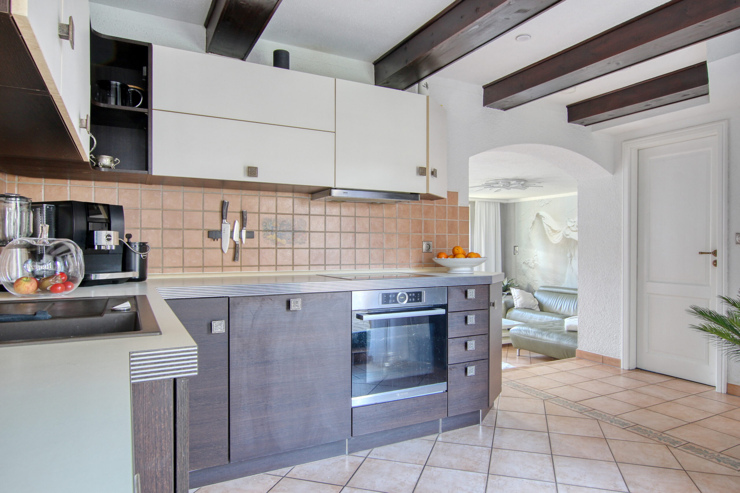 Der zentrale Lebensmittelpunkt des Hauses ist der helle und gemütliche Wohnbereich. Das offene Wohnzimmer geht harmonisch in den modernen Wohn- und Küchenbereich über und bietet ausreichend Platz für einen Esstisch. Die hochwertige Nolte-Einbauküche, die weniger als zehn Jahre alt ist, überzeugt durch ihre moderne Gestaltung und ist mit hochwertigen Elektrogeräten ausgestattet. Auf Wunsch kann die Küche übernommen werden.