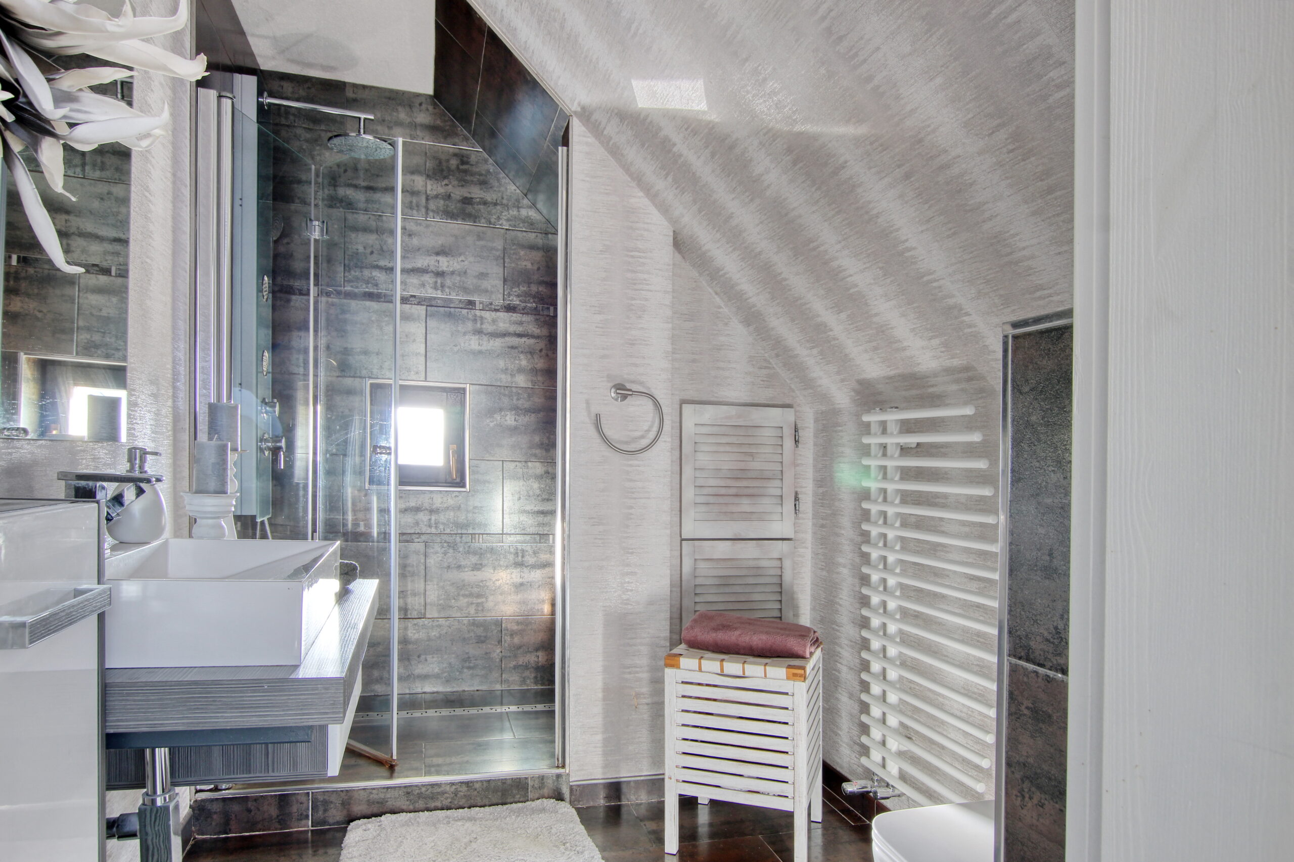 Über eine charmante Holztreppe erreichen Sie das Obergeschoss. Hier stehen Ihnen zwei weitere Zimmer zur Verfügung, die flexibel als Kinder-, Schlaf-, Arbeits- oder Gästezimmer genutzt werden können. Ergänzt wird diese Etage durch einen kleinen Ankleide- bzw. Abstellraum sowie ein weiteres, ebenfalls kürzlich modernisiertes Badezimmer mit Dusche, WC und Handwaschbecken. Während im Erdgeschoss eine Fußbodenheizung für behagliche Wärme sorgt, sind im Obergeschoss Heizkörper installiert.