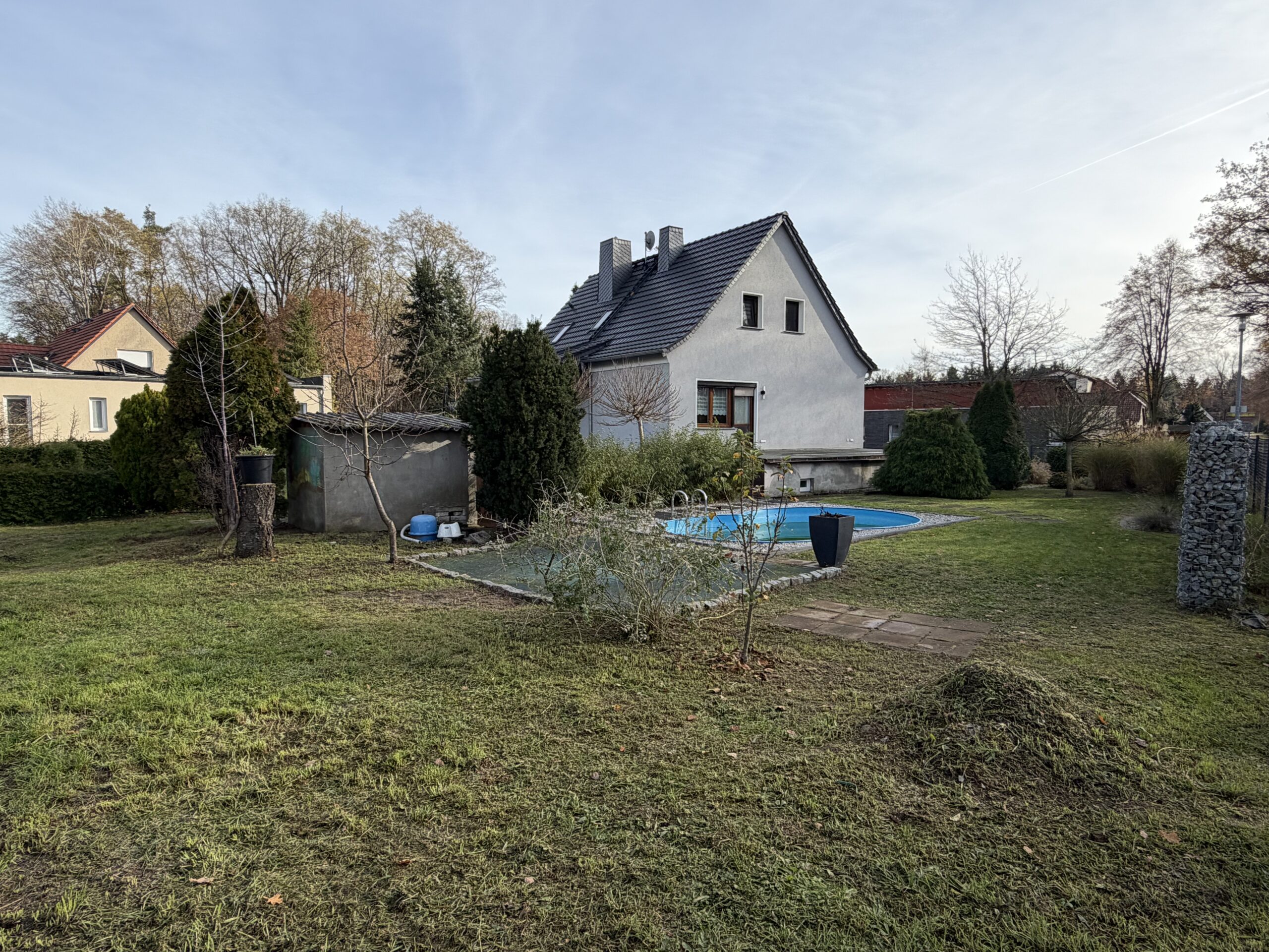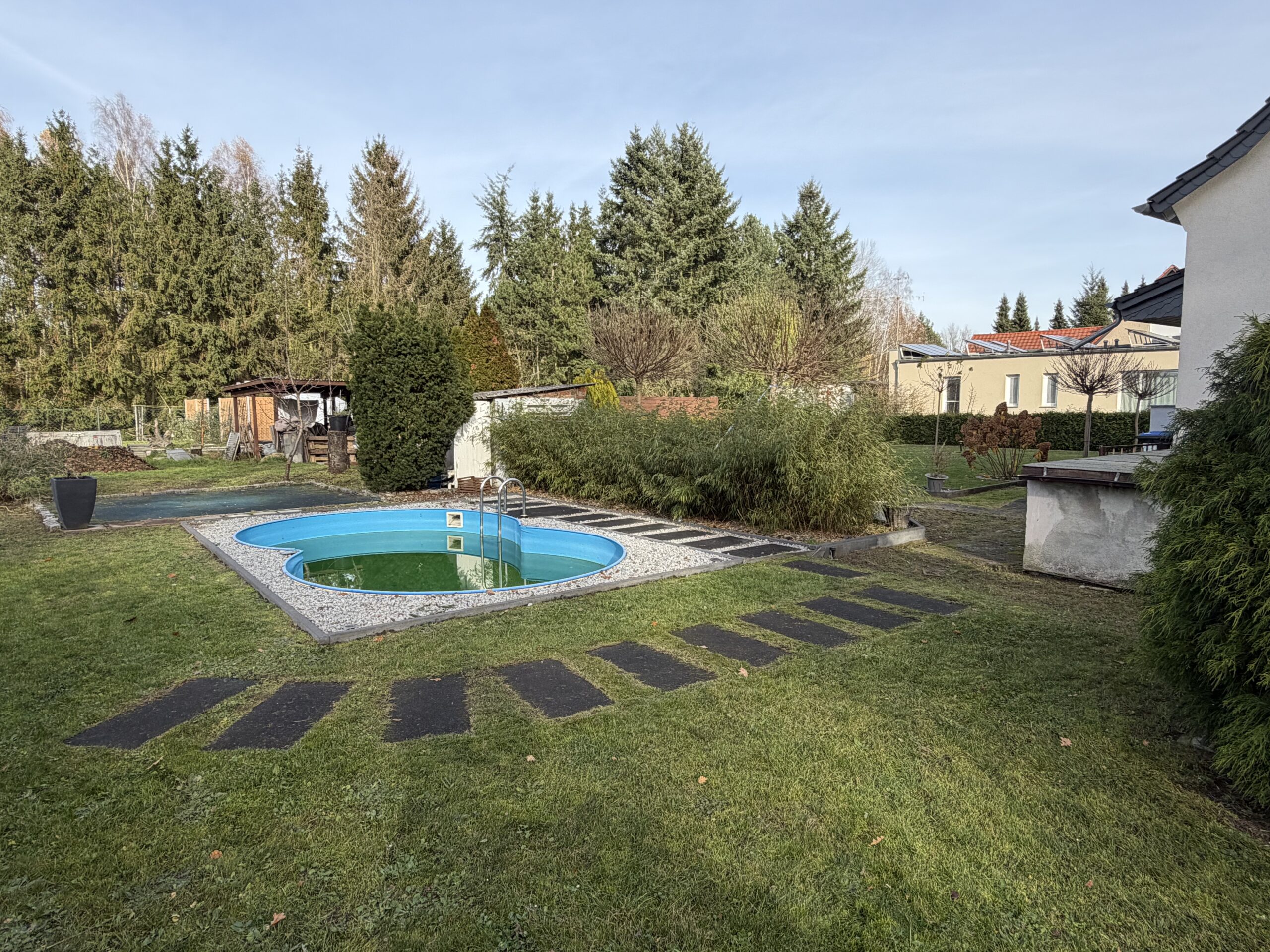 Ein besonderes Sommer-Highlight ist der vorhandene Pool – ideal für Familien, die warme Tage gern im eigenen Garten genießen möchten.